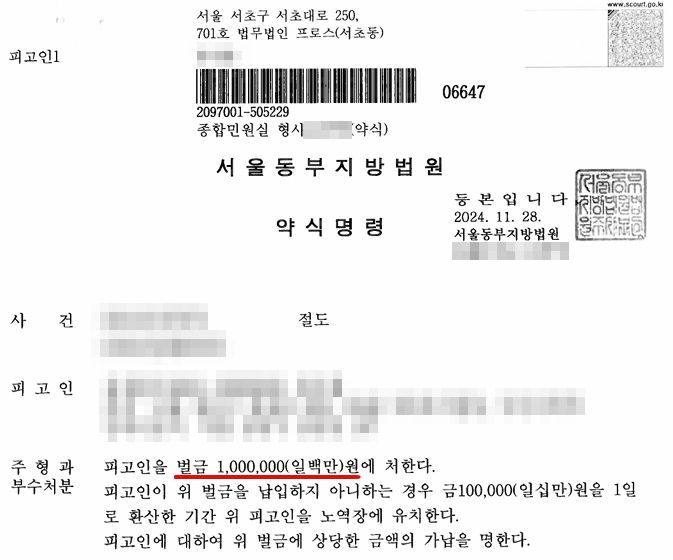 3. 결과(벌금 100만 원 구약식 처분)