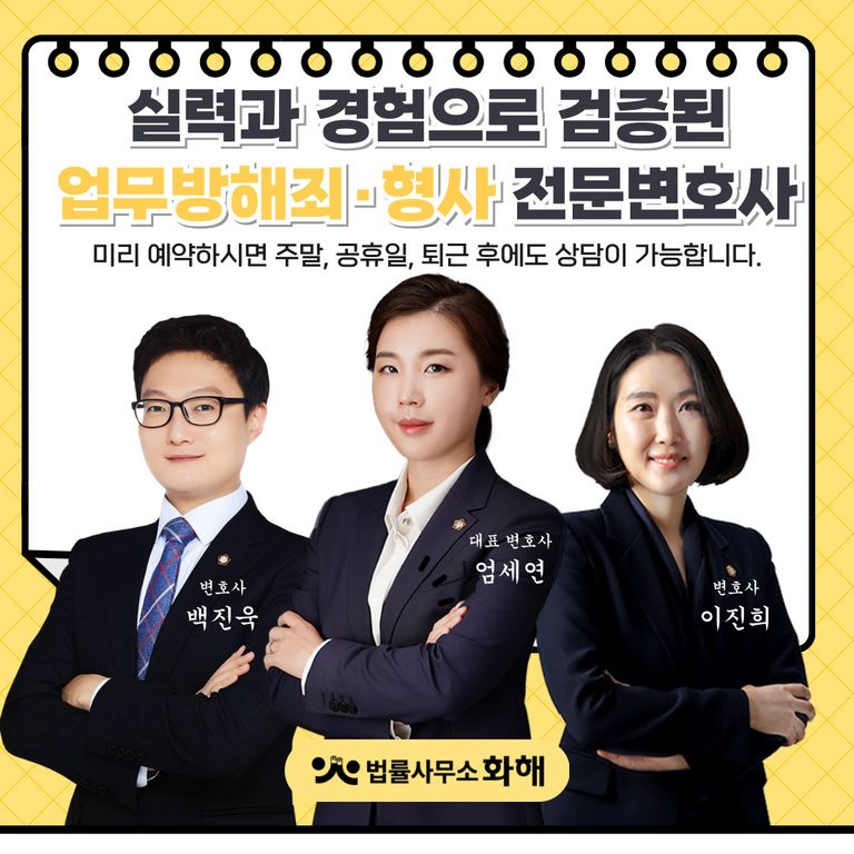 업무방해죄는 일상에서 흔히 발생할 수 있지만 성립 요건과 법적 판단 기준이 복잡하고 적용 범위가 넓은 범죄이기에 형사 전문변호사의 법률 조력을 받으시길 적극 권유해 드리는데요. 특히 업무방해로 인해 피해를 겪는다면 정신적·금전적 손해가 클 뿐만아니라 업무방해죄 혐의를 받게 된다면 경우에 따라 처벌 수위도 높아질 수 있기에 주저 없이 법률사무소 화해 형사 전문변호사에게 연락하셔서 도움받으시길 바랍니다.