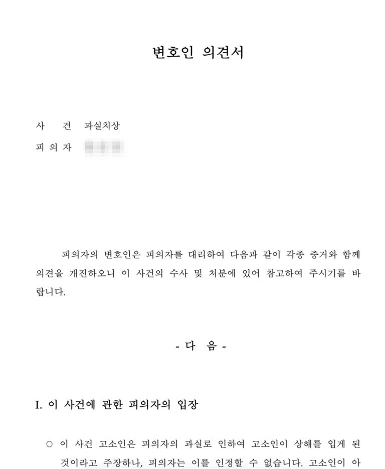 ○ 1차 피의자신문 당시 담당 수사관님은 ‘어쨌든 사고가 났으면 충돌한 사람이 책임을 져야 하는 것 아니냐’는 입장이셨고, 이에 대해서 사고가 난 것 자체가 피의자의 과실이 아니라는 것을 구체적으로 진술하고 논증할 필요가 있었습니다.
