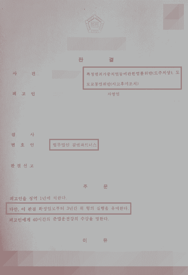 특히 과거 음주운전 및 무면허 전력이 있어 실형이 선고될 가능성이 컸던 만큼, 의뢰인은 감경을 받을 수 있는 방안을 찾기 위해 저희 법무법인을 찾아왔습니다.