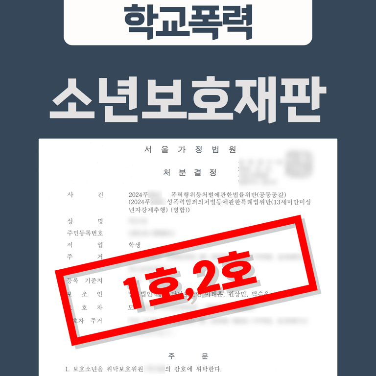 가정법원은 사건을 판단하여 보호처분을 내리게 되는데, 최대 소년원 송치까지 처분을 받을 수 있기 때문에, '나이가어린데 용서해 주겠지'라는 안일한 생각으로는 아이가 보호자와 격리될 수도 있다는 점을 유의하셔야 합니다.