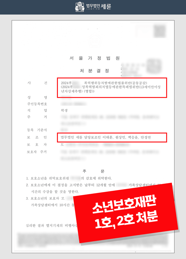 법무법인 세륜의 조력과A 군의 깊은 반성, 보호자님의 적극적인 협조로 A 군은 비교적 경미한 1호, 2호처분을 받고 무사히 가정으로 귀가할 수 있게 되었습니다.