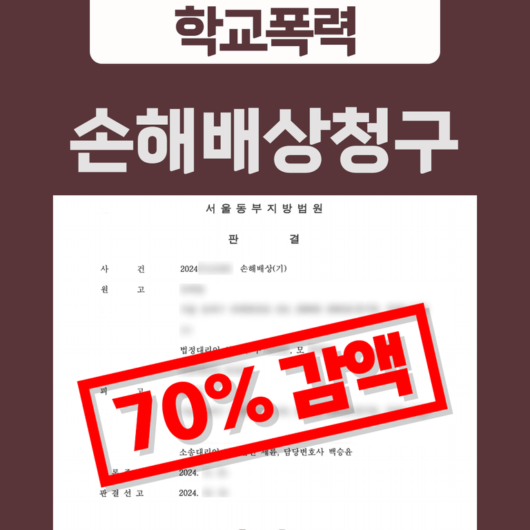 🚨학교폭력 피해자측 부모가 무리한 합의금을 요구하며 민사소송을 제기한 사례로, 법무법인 세륜의 조력으로 합리적인 범위까지 감액하여 방어한 실제 사례입니다.