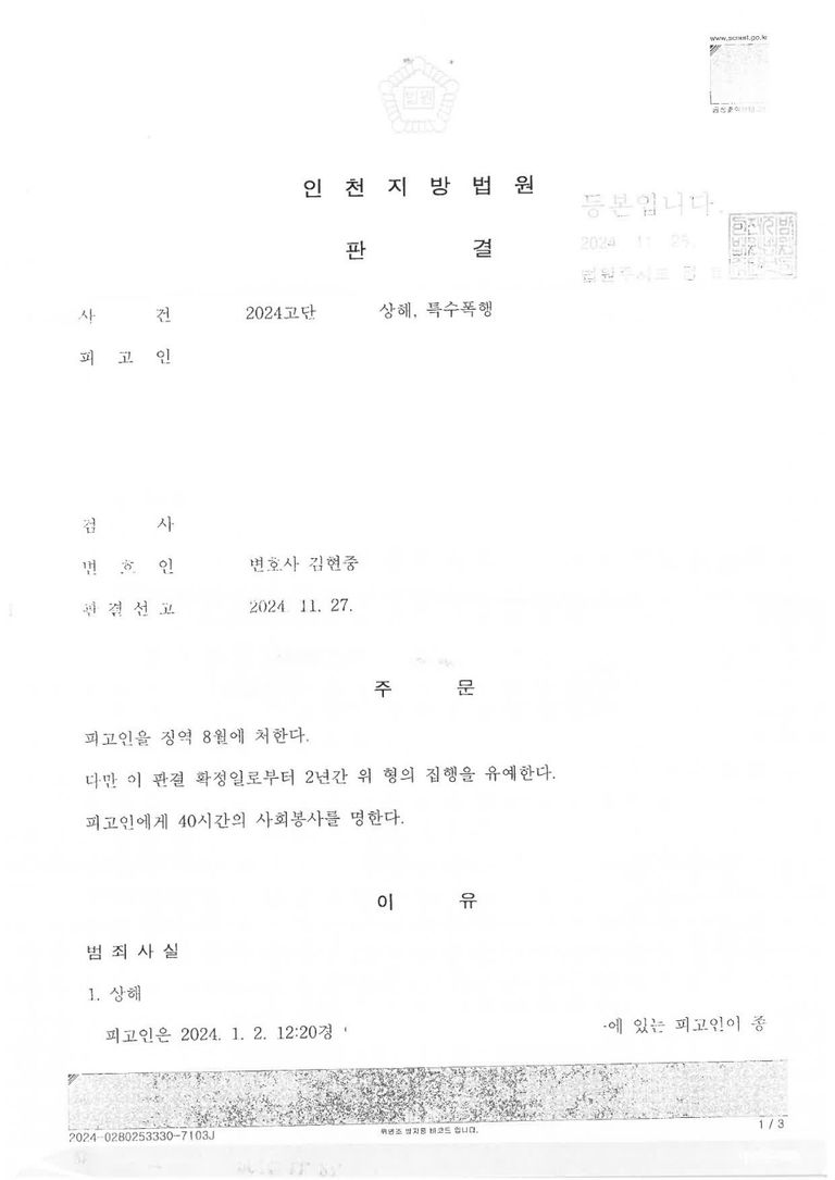 ****판결문을 보시면 아시겠지만 변호인으로서 제 이름만 들어가 있는 것을 확인하실 수 있습니다. 제가 온전히 혼자서 이끌어 낸 사례만을 저의 해결사례로 올리는 것이니 참고 바라며, 고용 변호사가 처리한 사건에서 제 이름만 들어간 사례라던 가 다른 변호사들과 함께 처리한 사건에서 제 이름이 들어갔다는 이유로 자신의 독자적인 해결사례인 것처럼 올리지 않습니다. 또한 착오가 없는 이상, 기존에 올렸던 해결사례를 일정 기간이 지난 후에 새로운 해결사례인 것처럼 재차 업로드 하지 않습니다. (날짜가 최근날짜가 아닌 것은 재업로드 한 것이 아니라, 바빠서 과거에 올리지 못한 해결사례를 이제서야 올리는 것 입니다. 영업에 크게 관심이 없는 이유로 미처 올리지 못한 해결사례들이 너무 많이 쌓여 있습니다.)****