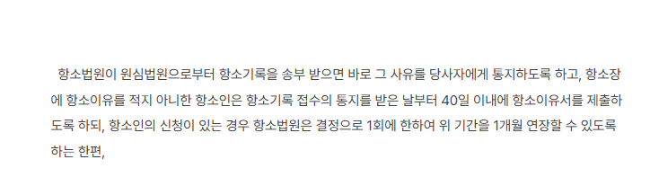 A) 1심에 불복하는 것을 항소라고 합니다. 항소를 하면 항소이유서를 써야합니다. 바로 항소이유서에 제출기한이 설정된 것이 개정법의 핵심입니다.
