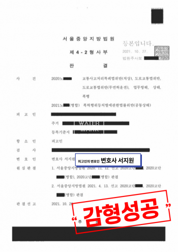 서지원 변호사는 항소심에서 음주운전 사건과 공동상해 사건을 병합할 수 있도록 최선을 다했습니다. 항소심은 1심에서 이미 주장 정리가 끝났기 때문에 심리가 길게 진행되지 않는 특징이 있습니다.