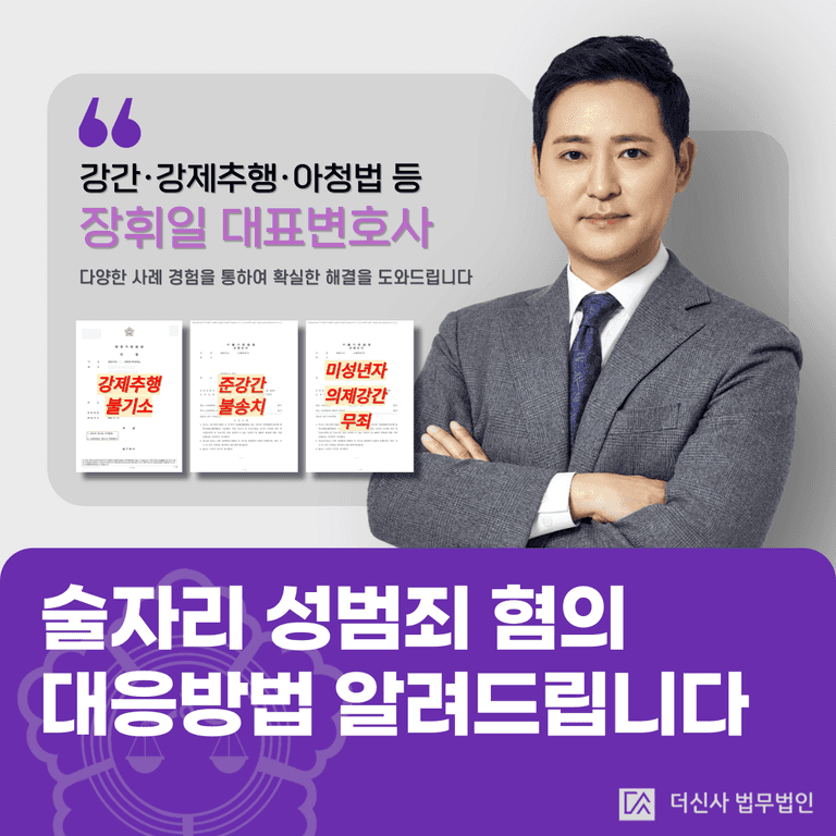 술자리에서 발생한 성범죄 혐의로 고민하고 계시다면, 더신사 법무법인과 상담하여 가장 확실한 해결책을 찾으시길 바랍니다.