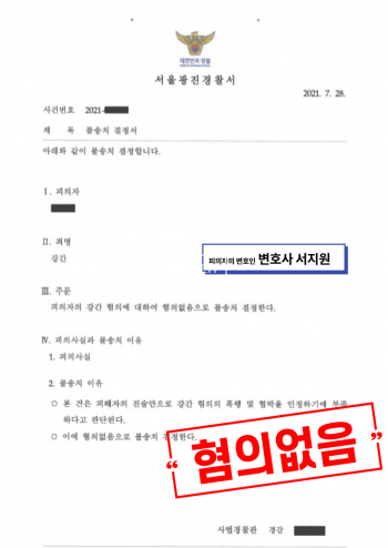 수사기관은 서지원 변호사의 변론을 신뢰하여, 강간 혐의에 대해 불송치 결정을 내렸습니다.
