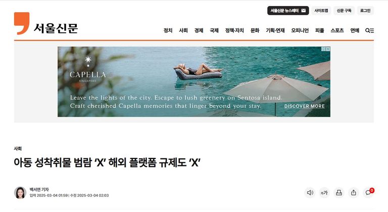 이처럼 X에 검색어만 넣으면 아동 등을 대상으로 한 성착취 영상을 손쉽게 시청할 수 있는데도 해외 플랫폼에 대한 수사가 어려워 ‘사각지대’에 놓여 있다는 지적이 제기된다. 또 수사를 통해 적발하더라도 게시자나 이용자가 사전에 이런 불법 영상임을 알고 찾아봤다는 점을 입증하기가 어려워 처벌도 쉽지 않다는 게 법조계의 우려다.