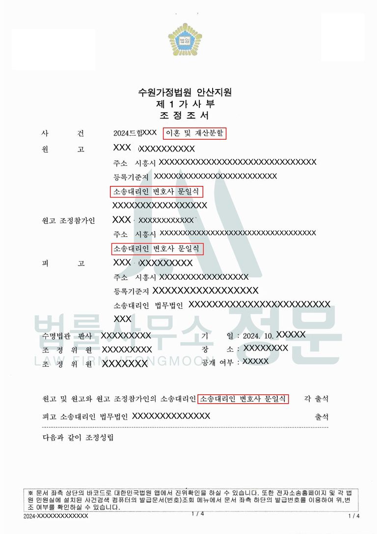 이에 의뢰인은 법률사무소 정문의 문일식 변호사를 찾아주셨습니다. 이에 문일식 변호사는 사실혼이어도 재산분할이 가능하다면서 다양한 성공사례를 보이며 설명해드렸습니다. 의뢰인은 긴 고민 끝에 재산분할 의뢰를 하셨고, 문일식 변호사는 1) 사실혼으로 지낼 때의 소득, 2) 사실혼으로 지낼 때의 의뢰인의 기여, 3) 사실혼으로 지낼 때 상대방의 사치와 낭비 등을 입증하여, 현재 상대방 명의의 집에서 상당 부분은 의뢰인에게 재산분할이 되어야 한다고 주장하였습니다. 그리고 상대방 변호사는 그러한 사정을 모두 수긍하여 조정에 임한다고 하였고, 이에 조정절차로 상당한 재산분할 액수를 인정받았습니다.