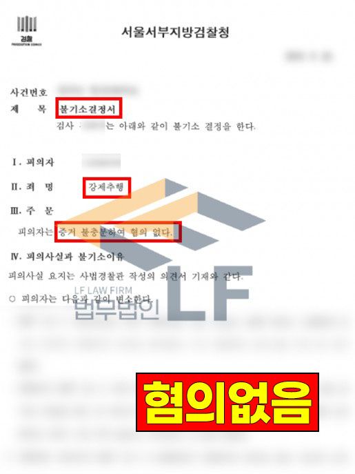 의뢰인은 상담을 통해 상당한 억울함을 토로하였으며, 사건 당일의 모든 상황을 파악한 LF 변호인은 사실관계를 상세히 담은 변호인 의견서 작성을 통해 의뢰인의 무혐의를 주장하였으며, 조사에 입회하여 상대 여성의 진술을 파악한 뒤 담당 검사와의 면담을 통해 상대여성 진술의 신빙성을 탄핵하는데에 주력하였습니다.
