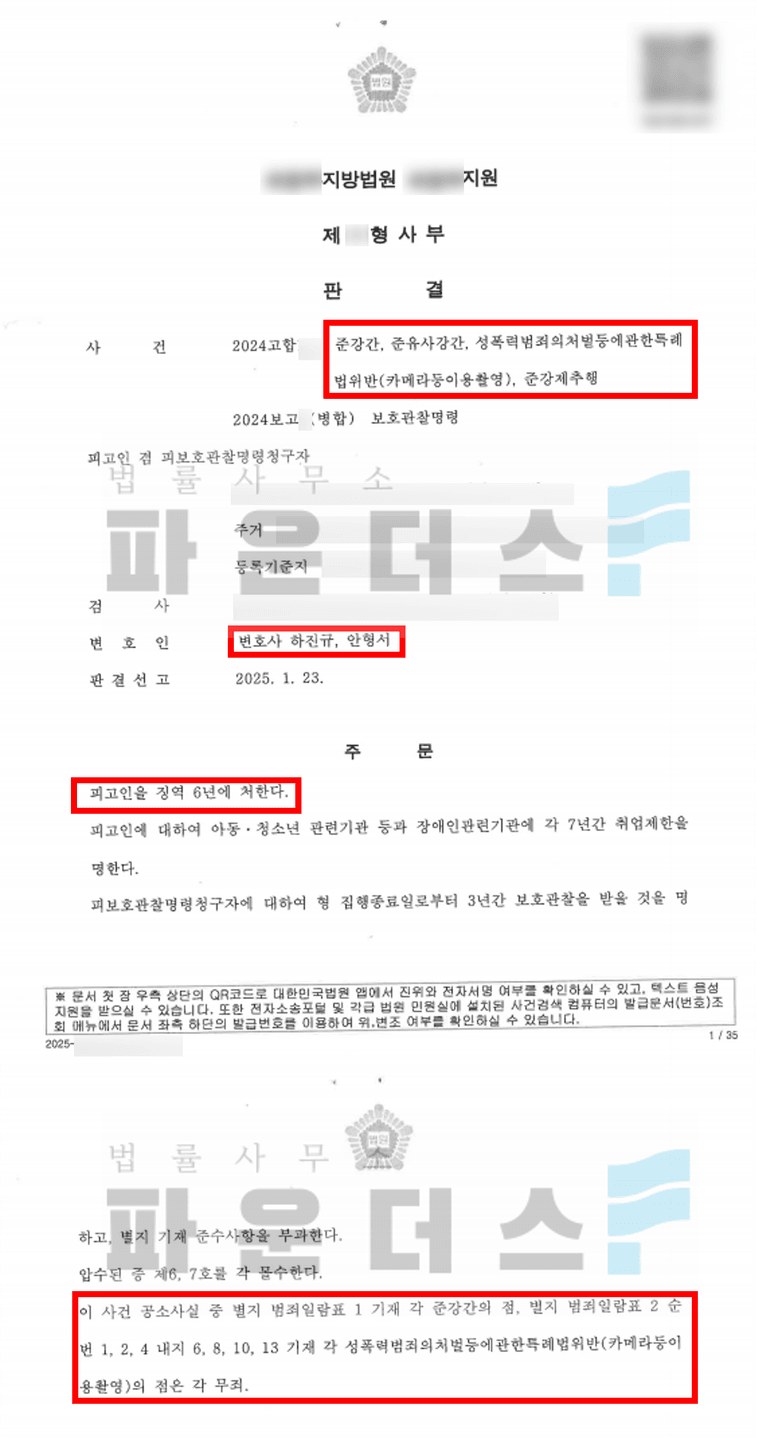 의뢰인은 주거침입 준강간죄와 강간죄 등에 연루되어 수사대상이 되었고 압수수색과정에서 카메라등이용촬영죄와 준강간죄가 추가 적용되어 파운더스 변호인의 조력을 요청하였습니다.