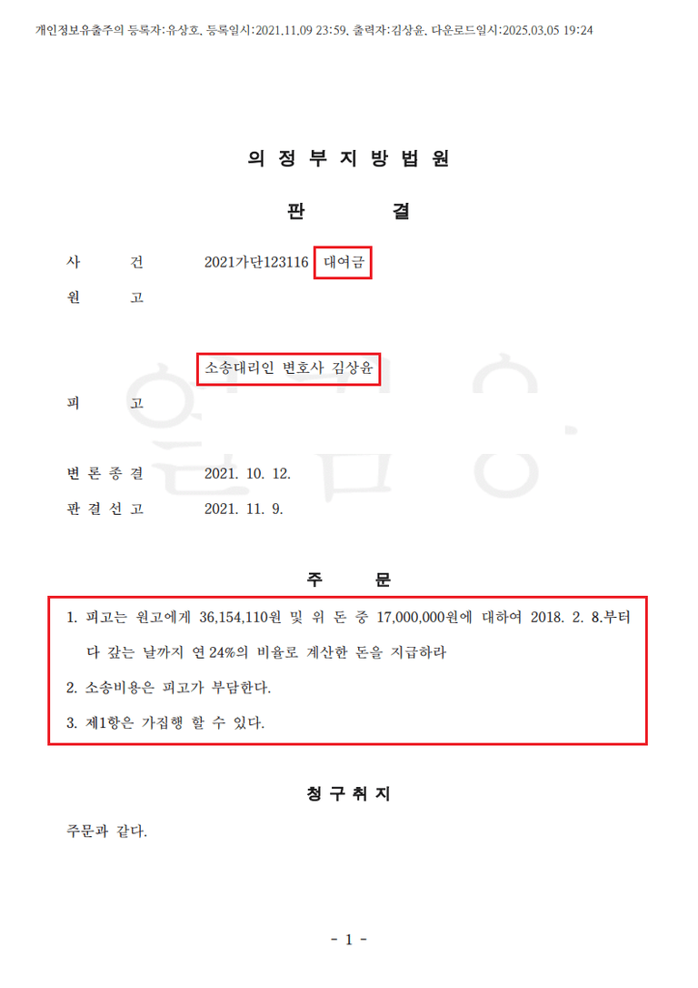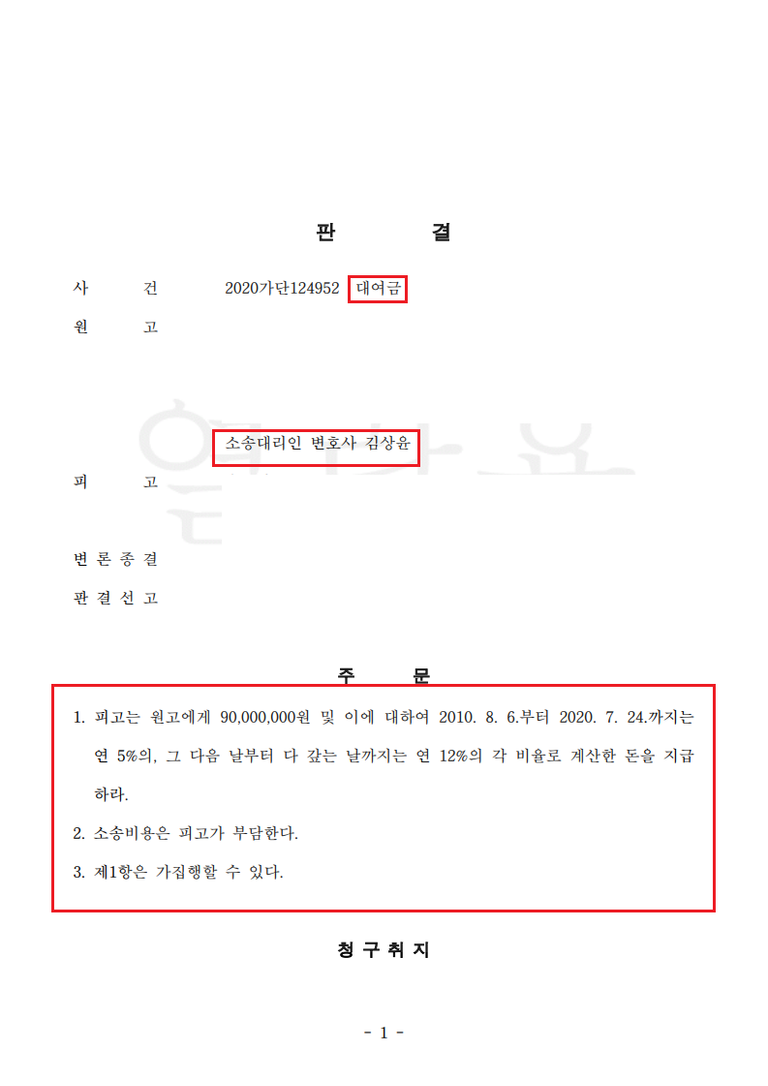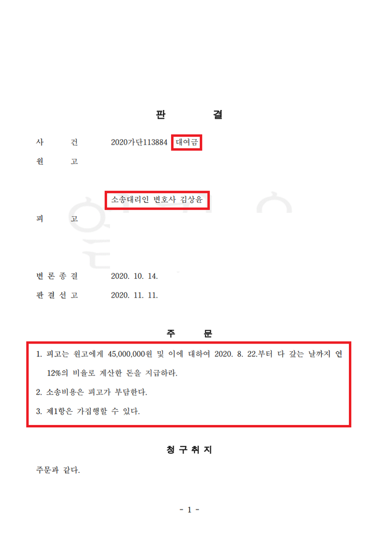 (기타 김상윤 변호사 대여금 사건 성공사례)