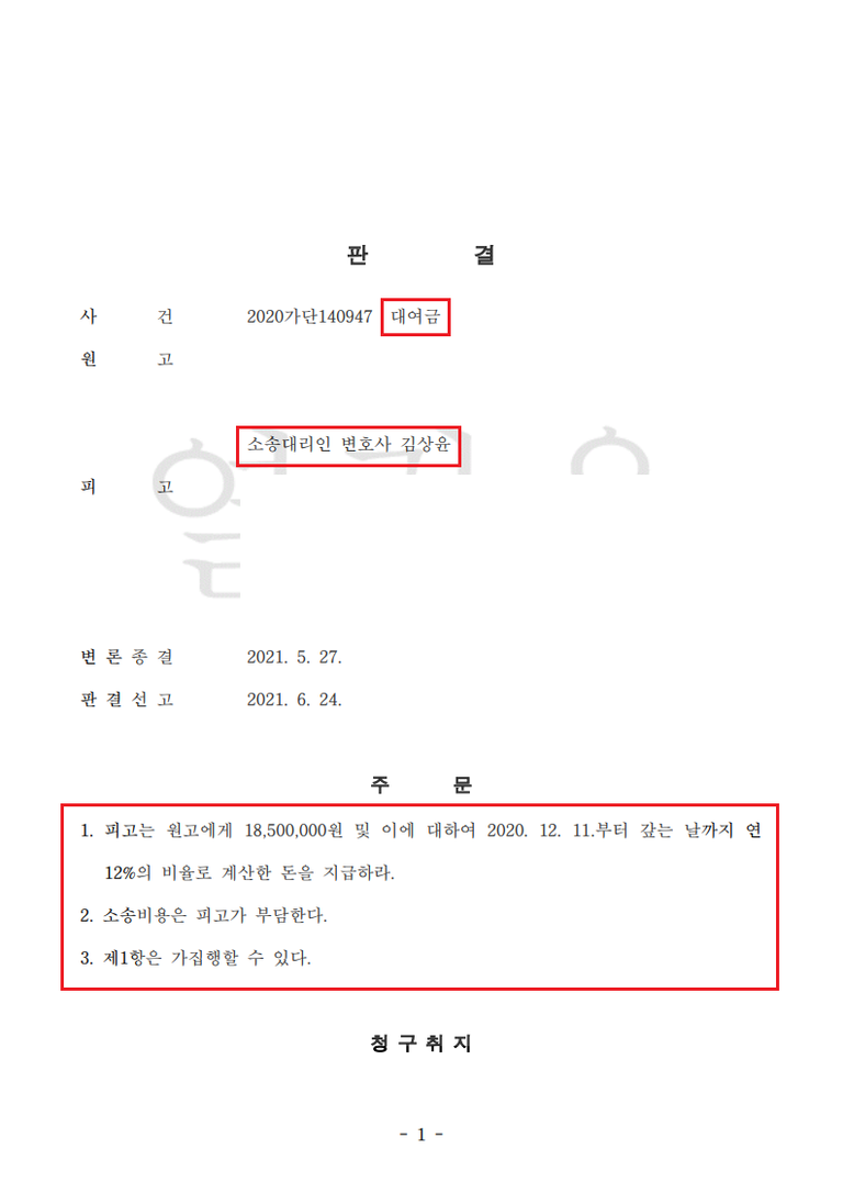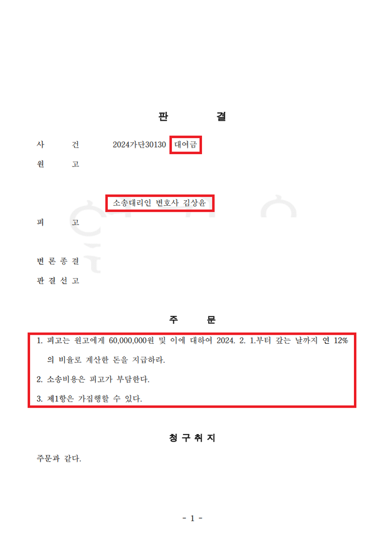 그 결과, 차용증 없이도 대여금 전액 반환 판결을 받아냈습니다.