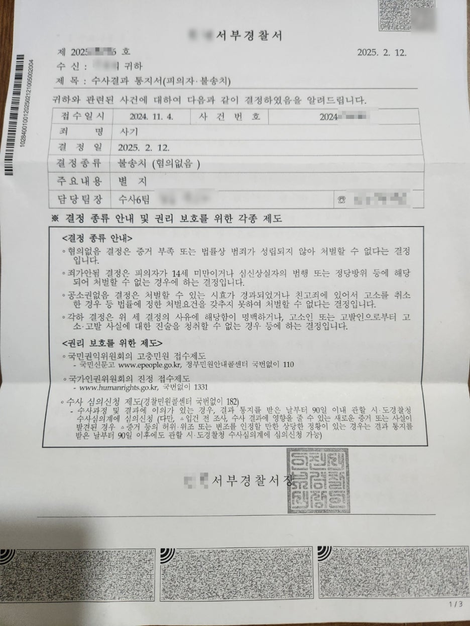 최근 제가 변호인으로 참석한 사기 혐의 사건에서, 경찰로부터 "혐의없음" 불송치 결정을 받았습니다. 사기죄에 대하여 간단히 살펴보고, 수사과정에서 왜 변호인이 필요한지 그 역할, 그리고 본 사건 결과에 대해 간단히 말씀드리겠습니다.