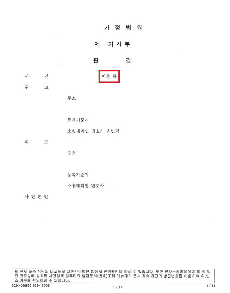 이혼을 결심하고 저희를 찾아와주신 사안입니다.
