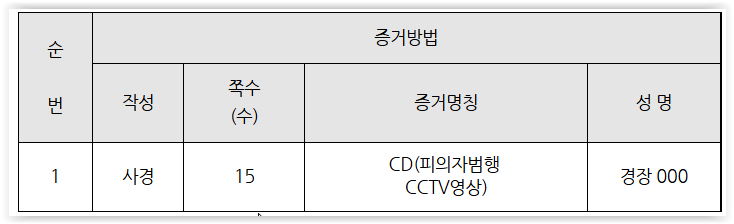 "조사 받을 때 경찰이 CCTV를 확보하여 보여주었다."