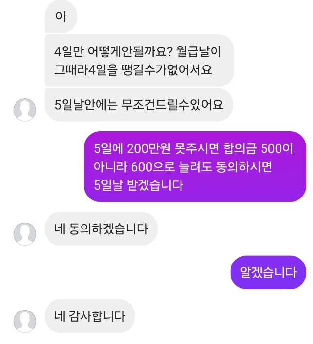 처음에는 500만원을 구할 수 없다며 지급 거부의사 표시를 하더군요.