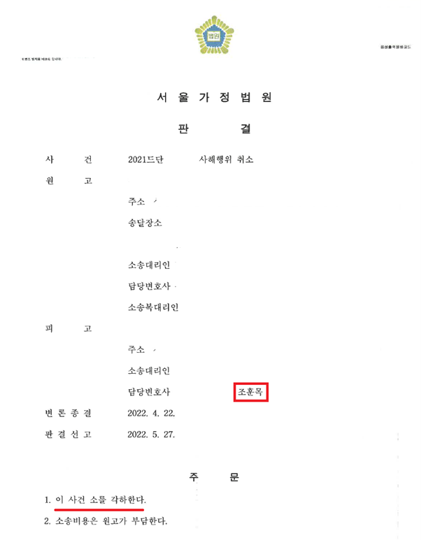 이에 저는 '원고의 청구가 실체적 요건이 부합하지 않을 뿐만 아니라, 제소기간을 도과하여 부적법하다는 점'을 재판부에 적극적으로 주장, 입증하였습니다.