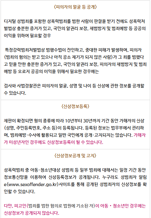 신상등록, 고지, 공개 등이 될 수 있나요?📌"
