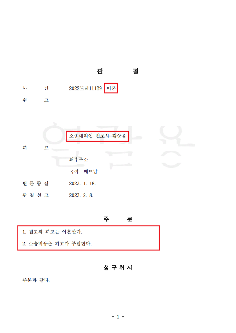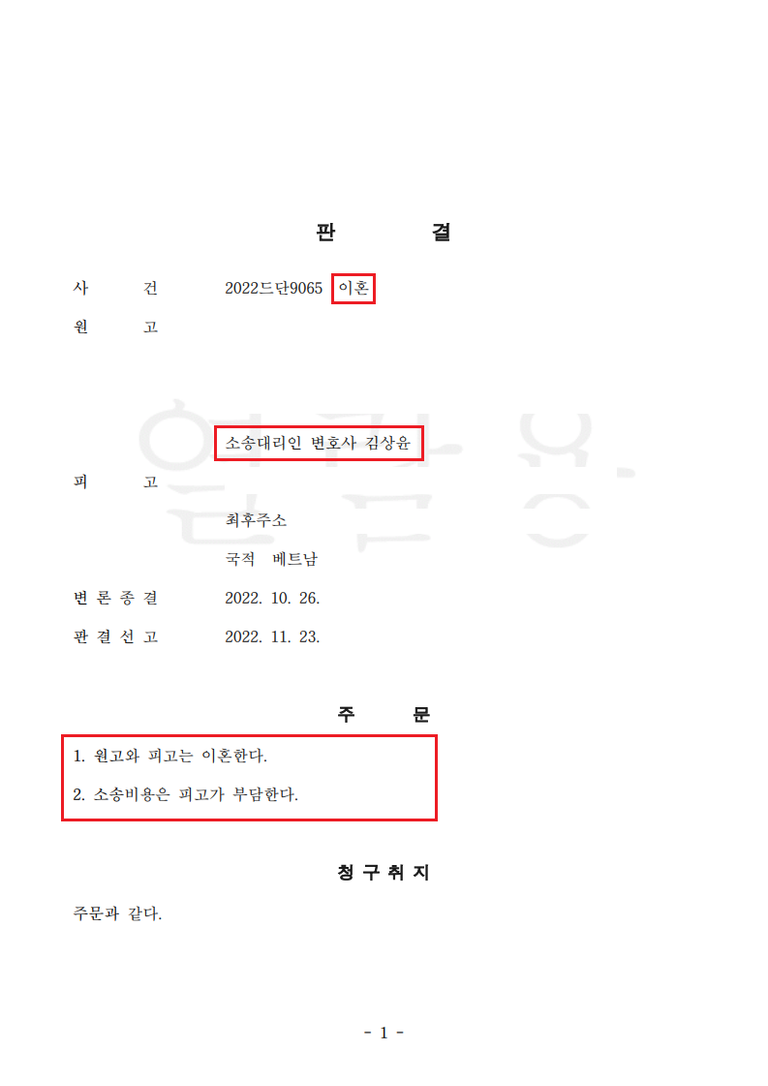 김상윤 변호사는 다수의 이혼, 국제이혼 사건을 성공적으로 해결한 경험과 노하우를 보유하고 있습니다. 유사한 사안으로 법적 조력이 필요하시다면, 김상윤 변호사와 상담해 보시기 바랍니다.