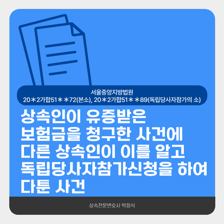 다른 상속인은 원고가 망인으로부터 받은 유증의 효력은 원고의 해약환급금 청구에 미치지 않는다는 이유로 독립당사자참가신청을 하면서 예비적으로 원고를 상대로 유류분반환청구를 하였습니다.
