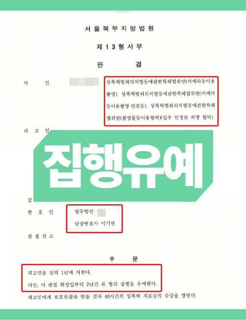 만일 이러한 행위를 반복적으로 저지른 경우 형량이 2분의 1까지 가중됩니다. 즉, 단순 촬영이 아닌 협박까지 더해진다면 사실상 실형이 불가피합니다.