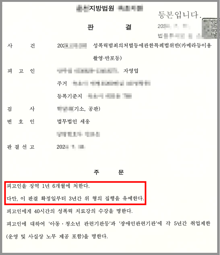 하지만 의뢰인이 촬영한 영상은 모두 피해자들이 수영복을 입고 있는 영상으로 성적수치심을 유발할 가능성이 큰 것들이었고, 촬영 장소를 미리 물색하여 텐트까지 설치하고 계획적으로 범행을 저지른 것이었으며, 2년간의 범행으로 인한 피해자가 140명에 이르렀기 때문에 징역형의 실형이 선고될 수 있는 상황이었습니다.