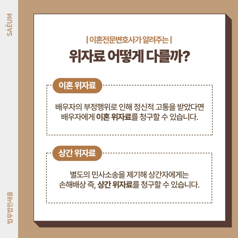 ✔ 이혼 위자료와 상간 위자료는 별개의 청구이므로 전략적으로 접근해야 합니다.