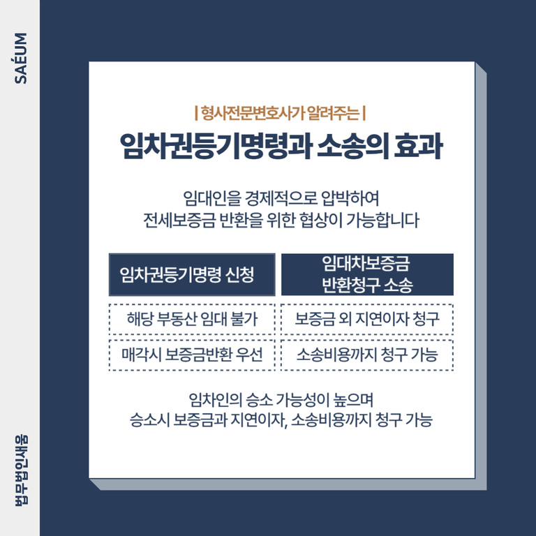다만, 개인이 법적 절차를 진행할 경우 소송 비용과 시간 부담이 클 수 있으므로, 변호사의 도움을 받는 것이 효과적입니다. 변호사가 개입하면 집주인에게 강한 법적 압박을 가할 수 있을 뿐만 아니라, 협상 과정에서도 보다 유리한 결과를 도출할 수 있습니다.