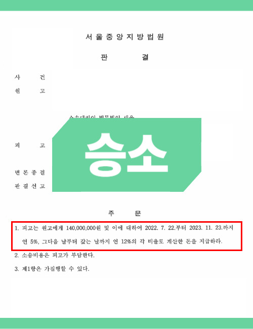 본 사무소는 승소 가능성이 높음을 B씨에게 설명하며, 이자와 소송비용까지 포함된 금액을 반환해야 한다고 강력하게 주장했습니다.