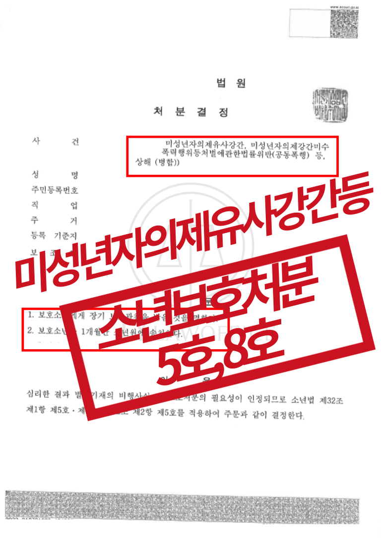 이와 같은 변호인의 노력에 따라, 의뢰인은 미성년자의제유사강간, 공동폭행, 상해 혐의를 받았지만, 장기 소년원 송치를 피하고 소년보호처분 5호, 8호 (장기 보호관찰, 1개월 이내의 소년원 송치)의 처분만을 결정 받으며, 무사히 사건을 종결시킬 수 있었습니다.