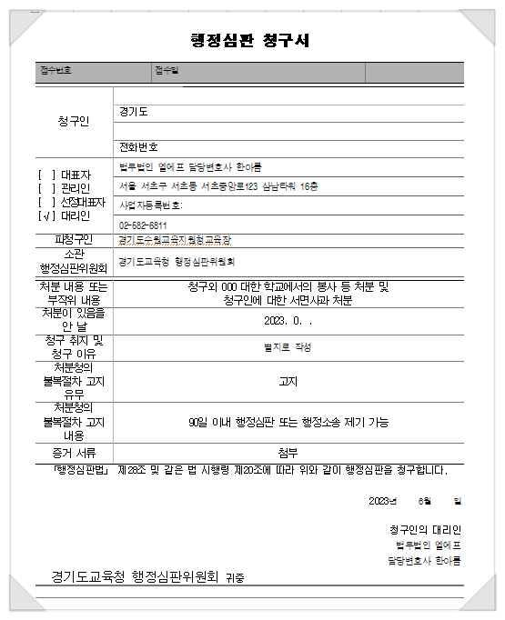 ★학교폭력 가해학생 선도조치(징계)에 대한 이의신청은 행정심판 또는 행정소송으로 가능합니다.★