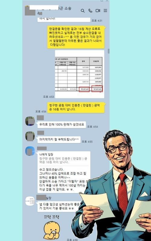 사실 단체소송은 인원도 많고 말도 많아 변호사로서 부담이 많이 되는데, 이번 일반분양자분들은 저의 방향과 전략을 끝까지 믿어주시고 따라와 주셔서 너무 감사했고, 이렇게 최상의 결과로 보답을 해 드려서 저도 참으로 감사한 소송 진행이었습니다!
