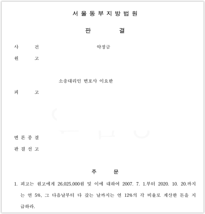 이후에도 피고가 약정금을 지급하지 않자 원고는 약정금 청구 소송을 제기하게 된 것입니다.