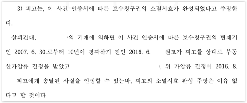 이에 2016. 6. 25. 가압류로 인한 소멸시효 중단의 효력이 유지되고 있음을 주장하였습니다.