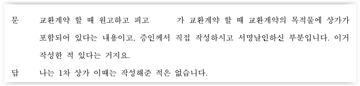 예를 들어 증인신문 도중 김숙자에게 장녀와 차녀의 교환계약 소송에서 김숙자가 서명날인하고 본인의 인감증명서까지 첨부한 사실확인서를 제시하였는데, 그 확인서에는 본 소송에서 장녀에게 불리한 내용이 담겨 있었습니다.