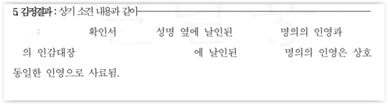 이에 저는 확인서의 인영과 인감증명서 상 인감란의 인영이 일치하는지 여부를 확인하기 위해 인영감정을 신청하였습니다. 감정결과 두 인영이 일치하는 것으로 확인되었습니다.