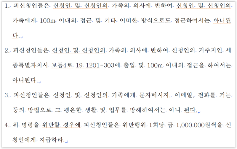 접근금지가처분 신청은 가해자의 접근을 폭넓게 제한할 수 있는데, 물리적 접근 금지 뿐 아니라 전화나 문자메시지·이메일과 같은 간접적 접근도 금지시킬 수 있습니다.