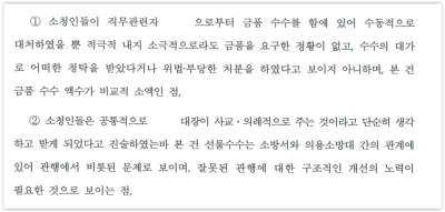 이 사건 선물은 당시 소방서에 있던 인원들에게 격려차 전달되었는데 의용소방대와 전혀 무관한 소방대원들에게도 교부된 반면, 오히려 의용소방대를 직접 관리하던 소방대원에게는 선물이 교부되지 않은 점,