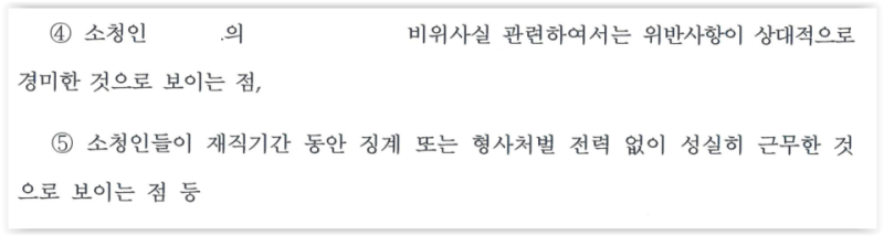 의뢰인들이 재직기간 동안 징계전력 없이 성실히 근무하여 다수의 표창을 수상한 점, 감봉기록이 남을 경우 승진 상 불이익을 받을 뿐 아니라 승진에 필요한 근무연수에서 1년의 근무기간이 제외되는 점, 의뢰인들이 징계 조사과정에 성실히 임하고 문답에 적극 참여하였던 점 등입니다.