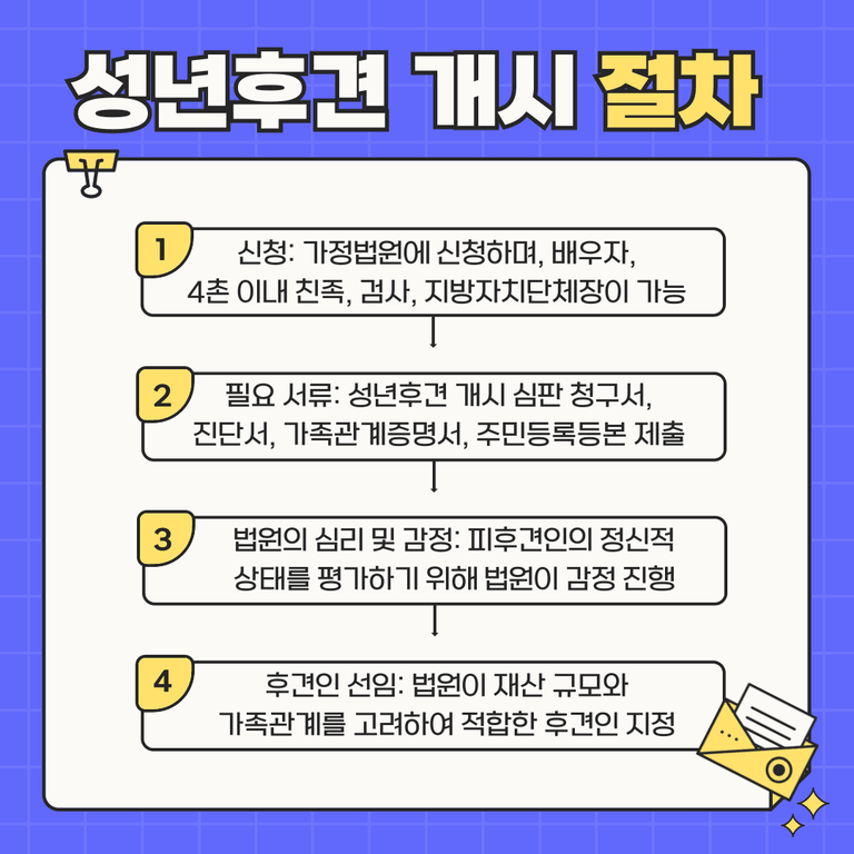 ③ 법원의 심리 및 감정: 가정법원은 피후견인의 정신적 상태를 평가하기 위해 감정을 명할 수 있습니다.