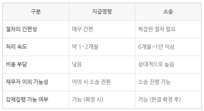 지급명령보다 비용과 시간이 많이 소요됨
