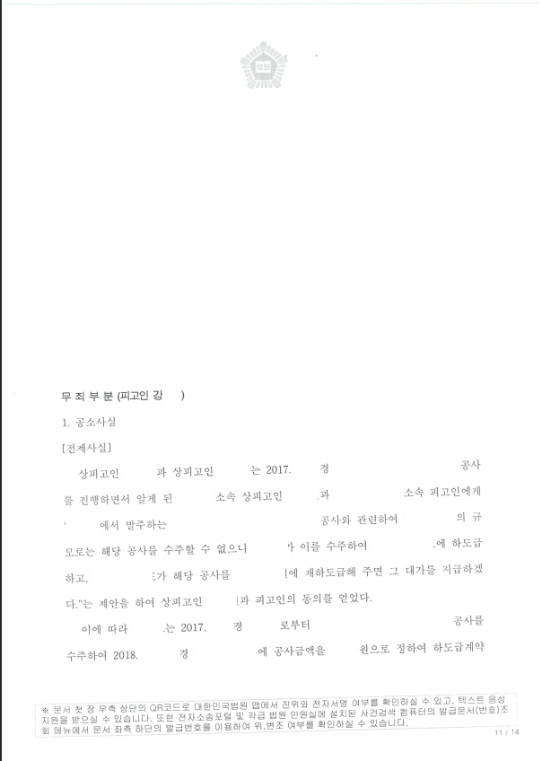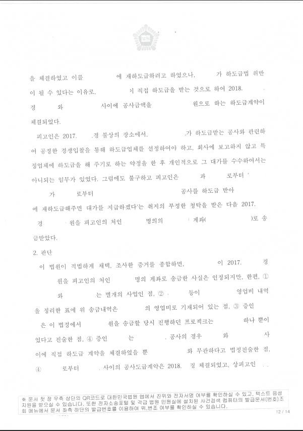 의뢰인은 회사 소속 임원이었는데 공사 수주 관련 하청업체로부터 돈을 받았다는 사실로 배임수재로 기소되어 저를 찾아오셨습니다.