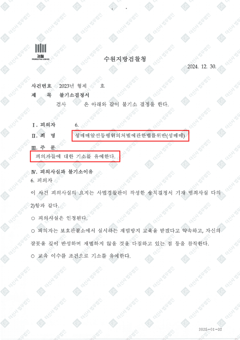 평소 충동을 잘 억제하던 의뢰인이었지만, 순간적으로 이성적인 판단을 놓치고 제안을 받아들였습니다. 마침 서로 가까운 거리에 있었기에 두 사람은 약속 장소에서 만나 금전적인 대가를 주고받으며 성관계를 가졌습니다. 이후, 해당 여성이 이전에도 성매매와 관련된 활동을 하던 사람이었고 경찰의 주시 대상이었다는 사실이 밝혀졌습니다. 그녀가 조사를 받는 과정에서 의뢰인 역시 성매매 혐의로 경찰 조사를 받게 되었습니다.
