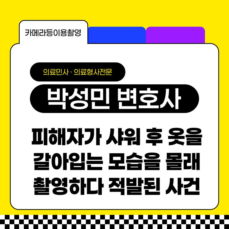 의뢰인은 피해자가 잠시 쓰레기를 버리려 열어놓은 문으로 몰래 집에 침입하여 숨어있었고, 피해자가 샤워 후 나와서 옷을 갈아입는 모습을 몰래 촬영하다 벨소리가 들려 적발되었고 카메라등이용촬영죄로 수사기관의 조사를 받게 되었습니다.
