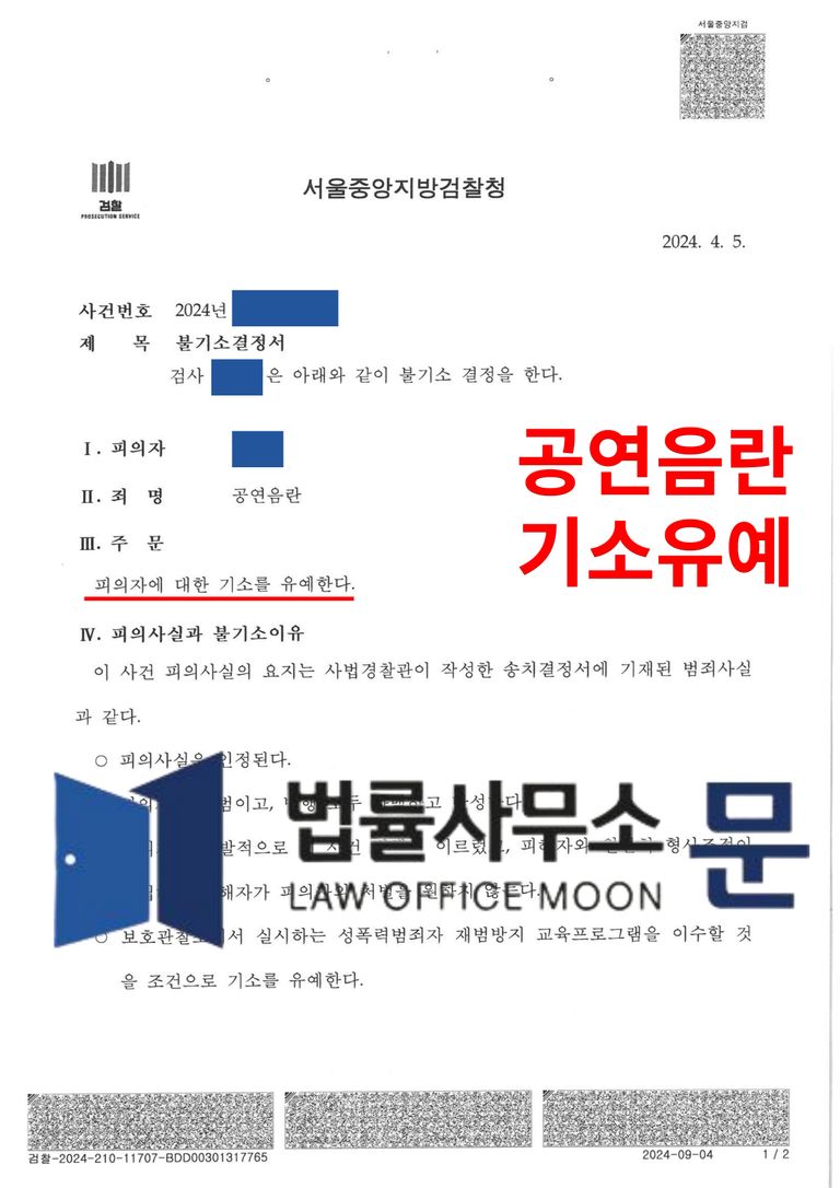 의뢰인은 검찰로부터 기소유예 결정을 받았습니다.