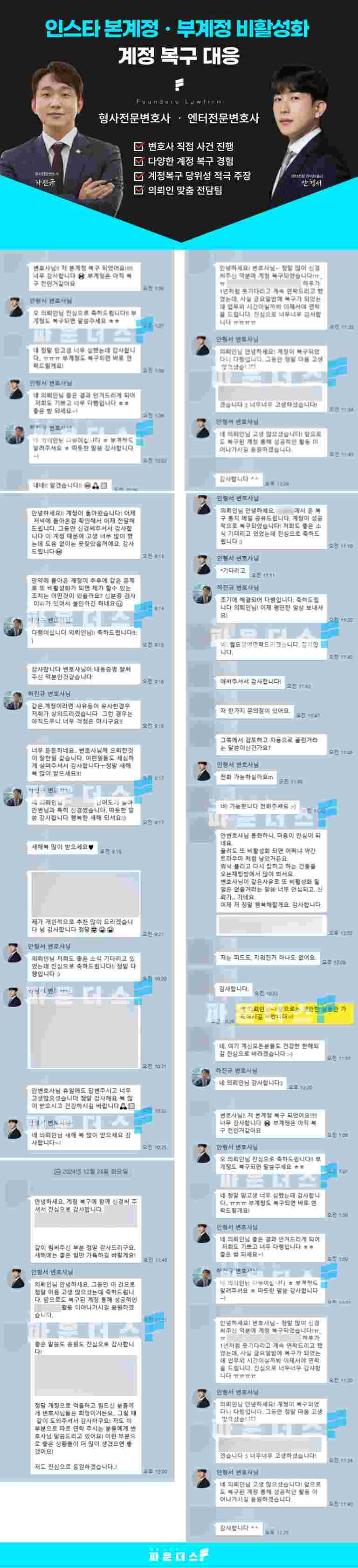 내용증명 발송 이후 의뢰인 인스타그램 본계정에 대한 재검토가 이루어졌고 결과적으로 원만히 복구되어 경제활동을 이어갈 수 있게 되었습니다.
