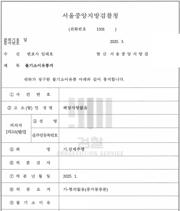 5. A씨는 강제추행죄 사건에서 저희의 조력을 받음으로써 검찰단계에서 불기소(무혐의) 처분을 받으셨습니다.