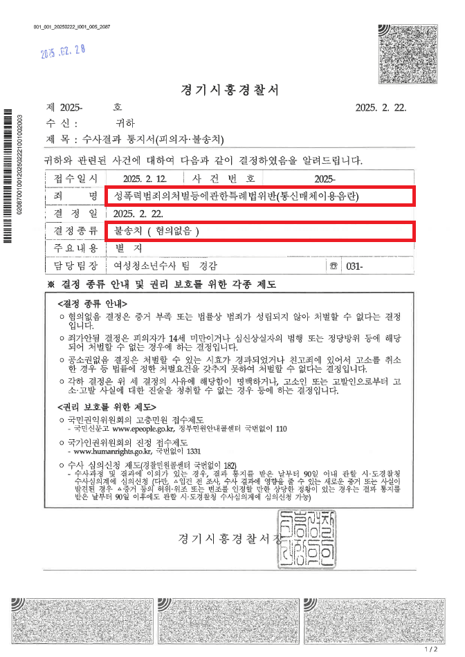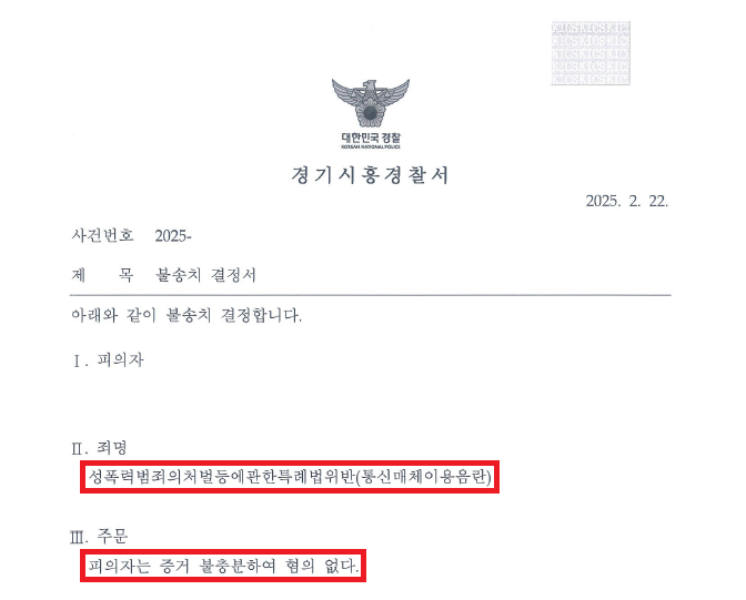 ④ '킹톡'의 특성, 랜덤 채팅 어플리케이션에서의 헌터의 유행과 문제점, 제가 맡은 랜덤 채팅 어플리케이션 사건들 중 무혐의나 무죄로 마무리한 사건들의 불송치결정서, 불기소이유통지서, 판결문을 정리하고, 그중 이 사건과 같이 고소인이 처음에는 부정적인 반응을 보이지 않다가 갑자기 돌변하여 성적 수치심을 느꼈다며 고소를 하겠다고 선언한 사건들에서 무혐의로 이끌어낸 주장들과 이러한 주장들을 인용한 불송치결정서, 불기소이유통지서, 무죄 판결문의 이유를 집중적으로 어필하면서, 특히 제가 맡아 '불송치(혐의없음)' 결정으로 마무리한 동일 사건들의 불송치결정서를 증거자료로 첨부하여, 이 사건 고소인 역시 '킹톡'의 특성을 악용하여 고소한 것으로 성적 채팅이나 사진 전송에 동의한 것이므로, 통신매체이용음란죄는 성립하지 않는다는 내용의 변호인의견서를 작성하여 제출하였고,